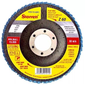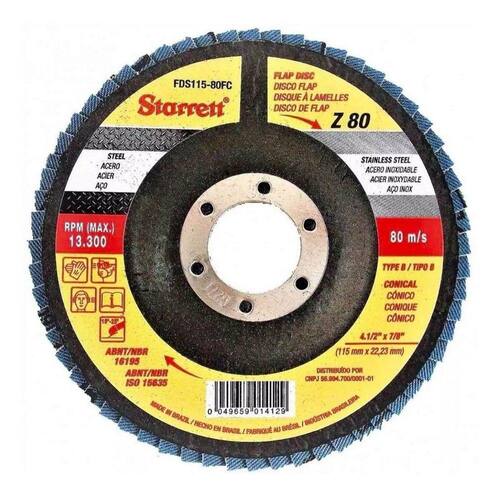 CARACTERÍSTICAS: - Discos com suporte em fibra de vidro e formato cônico. - Grãos de zircônio proporcionam maior vida útil. - Ótimo custo-benefício com excelente taxa de remoção de material. - Desbaste e acabamento na mesma operação, reduzindo o tempo e custo no processo. - Menor ruído e vibração.