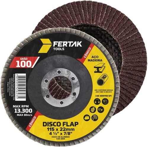 Diâmetro: 115mm Grão: 100 Material: Lixa abrasiva de alta performance. Compatibilidade: Uso com esmerilhadeiras e lixadeiras angulares. Aplicações: Lixamento, desbaste e acabamento em metais, madeiras e superfícies diversas.