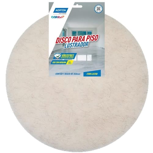 Produto: Disco lustrador de fibra para piso não abrasivo 350 mm Marca: Norton Cor: BrancoDescrição: O Disco lustrador de fibra para piso não abrasivo 350 mm da Norton é a solução ideal para alcançar um acabamento impecável em seus pisos. Desenvolvido para atender todas as etapas do tratamento de pisos, este disco é perfeito para polimento, oferecendo um alto nível de brilho e um acabamento . Experimente a excelência do Disco Lustrador de Fibra Norton Care e garanta um acabamento superior em seus projetos de tratamento de pisos. Ideal para quem busca qualidade, segurança e um brilho incomparável. Benefícios: • Acabamento impecável: Realça a beleza natural do seu piso;• Higiene: Protege sua família e colaboradores contra a proliferação de germes;• Facilidade de uso: Fácil de instalar e operar;• Economia: Maior durabilidade, reduzindo custos com reposição.Especificações: Não abrasivo: Garante um polimento seguro e eficaz, sem danificar o piso;Alto brilho: Proporciona um acabamento brilhante e duradouro;Tecnologia Norton Care: Evita a proliferação de vírus e bactérias, garantindo um ambiente mais higiênico;Versátil: Ideal para diversos tipos de pisos, como mármores, granitos e cerâmicas vitrificadas;Durabilidade: Construído com materiais de alta qualidade, garantindo longa vida útil. Marca: Não Informado
