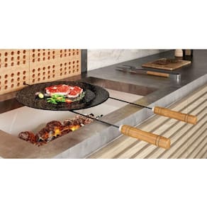 Disco para Churrasco Esmaltado Cabo Espeto com Alça de Madeira 43 cm - Especificações TécnicasDiâmetro: 43 cm.