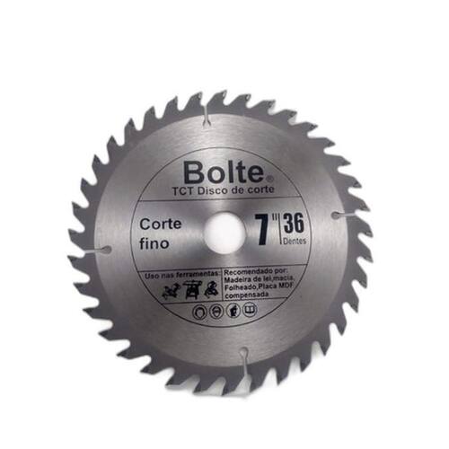 Disco para Madeira 36 Dentes Para Serra Circular 180 X 25,4mm Marca BOLTE 180mm X 25,4mm 36 dentes para corte de Compensados, MDFs e Madeiras em geral Acompanha bucha de redução abaixo; 01 bucha de redução de 25,4mm para 20mm Características; -180mm de diâmetro -36 dentes -espessura da pastilha 2,4mm -espessura do disco 1,5mm -furo de 25,4mm Marca: Não Informado Ean: 7890584701232