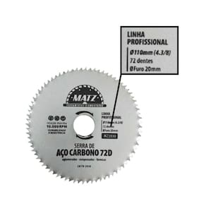 Informações técnicas: Perfil do corte: Serra de aço carbono Tipo de corte: A seco Dimensões: - Diâmetro externo: 110mm 4.3/8'' - Diâmetro do furo: 20mm - Espessura: 1mm Quantidade de dentes: 72 Rotação máxima por minuto RPM : 10.000 - 60m/s Para corte de: Madeira, aglomerado, compensado e formica Proporciona qualidade e produtividade na operação Produto de altíssima qualidade com alta performance Marca: Não Informado Ean: 7898659064862