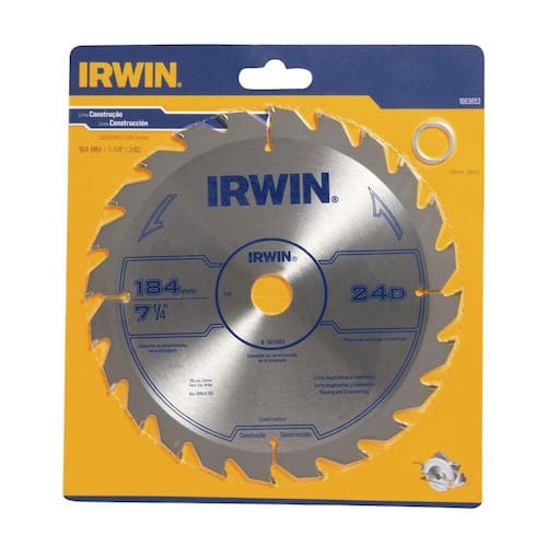 Características Principais: Marca: Irwin Tipo de Ferramenta: Disco Diâmetro do Disco de Corte: 18,4 cm Número de Dentes: 24 Diâmetro Central: 2 cm Modelo Detalhado: 184 mm / 7.1/4" Com Bucha de Redução: Sim Tipo de Discos e Rebolos: de Corte Superfícies Aptas: Madeira EAN: 42526906275