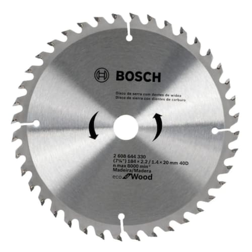 - Marca: Bosch; - Referência: 2608644330; - Modelo: eco for Wood; - Número de Dentes: 40; - Qualidade de corte adequada ao trabalho na obra; - Durabilidade.