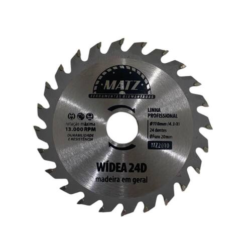Disco de corte serra wídea com 24 dentes, ideal para cortes precisos em madeira em geral. Projetado para corte a seco e refrigerado, oferece alta durabilidade e desempenho superior. Seus dentes de carboneto de tungstênio garantem cortes rápidos e limpos, reduzindo o desgaste e aumentando a vida útil do disco. Perfeito para marcenaria e projetos que exigem acabamento e eficiência. Informações técnicas: Perfil do corte: Serra Tipo de corte: A seco e refrigerado Dimensões: - Diâmetro externo: 110mm 4.3/8'' - Diâmetro do furo: 20mm - Espessura: 2mm Quantidade de dentes: 24 Rotação máxima por minuto RPM : 13.000 - 80m/s Para corte de: Madeira em geral Proporciona qualidade e produtividade na operação Produto de altíssima qualidade com alta performance Marca: Não Informado
