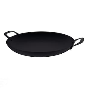 A capacidade volumétrica máxima para cozimento é de 3/4 da capacidade total da peça. Este produto não pode sofrer modificações. Ao utilizar utensílios quentes, tenha cuidado redobrado. Se necessário, utilize proteção para as mãos e mantenha-os fora do alcance das crianças. Antes do primeiro uso: Lave o disco com esponja macia, água quente, sabão ou detergente neutro e seque. A seguir, unte internamente com óleo de cozinha e leve ao fogo de 1 a 2 minutos, posteriormente, remova o excesso de óleo com um papel absorvente. Seu produto está pronto para uso. Durante o uso: Manuseie e retire os alimentos com o auxílio de um utensílio. O disco pode ir ao forno. Não utilize em fogões de indução, vitrocerâmico e elétrico. Limpeza: É importante que a limpeza seja realizada após cada uso e que não permaneçam resíduos de alimentos no disco. Sempre lave usando esponja e detergente ou sabão neutro. Não utilize em máquinas de lavar. Caso o alimento esteja aderido, umedeça a área e reserve até que possa remover os resíduos grudados com esponja e sabão. Seque o disco após a lavagem para evitar o aparecimento de seguida aplique uma fina camada de óleo de cozinha, a qual tem a função de proteger contra a corrosão. Armazene em seco. Obs.: Ao longo do uso, poderão aparecer pontos de oxidação (ferrugem), o que é perfeitamente normal em produtos fabricados em aço carbono.Importante: Este utensílio possui uma camada protetiva de óleo de girassol. Ao receber o produto, é normal que ocorra variação de cor da superfície. Para homogeneizar e recuperar o aspecto visual de seu produto, basta espalhar novamente uma fina camada de óleo comestível.