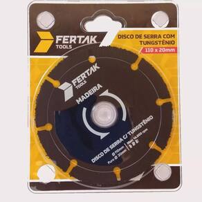 Disco de Serra com Tungstênio 110 x 20mm Para Madeira Fertak Utilizado para realizar cortes em madeiras além de ter resistência superior podendo ser utilizado em madeiras com pregos e resíduos de concreto.