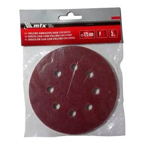 Disco de lixa 125mm gramatura Grão 100 para lixadeira roto orbital com 8 furos e base aderente MTX. Kit com 5 lixas. Para lixamento de Madeira, Massa, Metal e Similares.