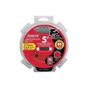 Diablo Discos de lixa Hook and Lock ROS para madeira, metal e plásticos - 12,7 cm, grão 80, mistura de cerâmica, pacote com 50 - DCD050080H50G