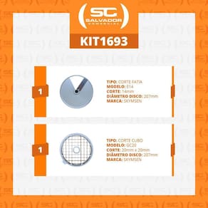 Muito importante:-- conferir produtos no ato do recebimento. Não aceitar produtos com embalagem violada amassado, rasgado, aberto, quebrado, etc , a recusa deve ser feita no ato.Conjunto de discos corte e14 fatias 14mm e gc20 cubos 20mm para pa7 pro 14x20x20mm frutas - skymsencomponentes do kit:- 1 grade cubo para processador de alimentos pa-7 pro cubos 20x20mm gc20 pro - skymsen- 1 disco fatiador 14mm e14 - skymsengrade cubo para processador de alimentos pa-7 pro cubos 20x20mm gc20 pro - skymsen:compatível somente com modelo pa-7 pro.- modelo: gc20 pro;- espessura de corte: 20x20mm;tamanho do produto:- altura: 2,7cm;- largura: 22cm;- profundidade: 23cm.Disco fatiador 14mm e14 - skymsen:- modelo: e14;- dimensões axlxp : 3,5cm x 20,4cm x 20,4cm;- peso bruto: 0,76 kg.Obs: o disco de fatias e a grade devem ser usados ao mesmo tempo para corte em cubos.