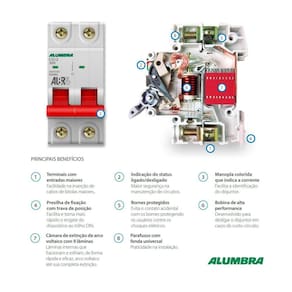 Os disjuntores termomagnéticos ALBR3 e ALBR6 foram projetados com tecnologia exclusiva Alumbra. protegem as instalações elétricas e o patrimônio de seus usuários contra curto-circuito e sobrecarga, oferecendo segurança sob medida e dupla proteção.