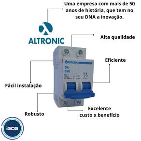Disjuntor Bipolar 40A Curva C Tipo Din/Iec Altronic