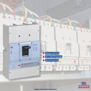 Especificações Gerais: - Código WEG: 13468915 - Modelo: DWB1000S1000-3ET - Corrente Nominal: 1000A Capacidade de Interrupção: 240vca - 65kA 380vca - 50kA 415vca - 50kA 440vca - 42kA 500vca - 22kA 550vcc -12kA 690vcc - 8kA -número de Polos: 3 polos -tensão máxima de Operação: 400VCA - Grau de proteção: Terminais - IP10 Tampa de acessórios - IP20 - Frequência: 60 Hertz - Tipo de disparador: Magnético e térmico fixo - Dimensões AxLxC : 26x22x10 cm