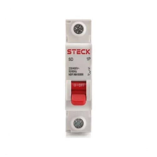 Disjuntor Din 1p 10a 3ka 230v Ca Curva C Steck Disjuntor Din 1P 10A 3kA 230V CA curva C Steck - Disjuntor Din 1P 10A 3kA 230V CA curva C Steck Características Gerais do Produto: - Curva Disparo: C - Polos: Unipolar - [In] Corrente Nominal: 10A - Tipo Rede: CA [Corrente Alternada] Acompanha o produto: - 1 - Disjuntor Garantia: - 30 Dias de Garantia