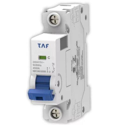 Disjuntor DIN Monopolar modelo YCB6H-63 Curva C TAF Mini Disjuntores Norma: NBR NM 60898-1 Certificação: Inmetro 6 a 63A O modelo YCB6H-63 está disponível nas versões 1, 2 e 3 polos com Corrente Nominal de 6, 10, 16, 20, 25, 32, 40, 50, 63 e 70A. Capacidade de Interrupção: 4,5kA Minidisjuntores Curva C - para proteção de circuitos em geral que também possa ter cargas de natureza indutiva que apresentam picos de corrente no momento de ligação, como microondas, ar condicionado motores para bombas, além de circuitos com carga semelhantes a essas. Curva de Disparo - Tipo C - 5 a 10 x In Capacidade de Interrupção kA - 4,5kA Icn = Ics Tensão de Operação Nominal Ue - 240 / 415V Tensão de Isolação Nominal Ui - 500v Tensão de Impulso Uimp - 4kV Frequência Nominal hz - 50/60Hz Temperatura Ambiente - 30ºC Número de Manobras Mecânicas - 20.000 Número de Manobras Elétricas - 6.000 Grau de Proteção - IP20 Conectores para Cabos - até 25mm Índice de Proteção - Maior Proteção - Classe 1 Fixação - Trilho DIN 35mm sem restrição de Posição Marca: Não Informado
