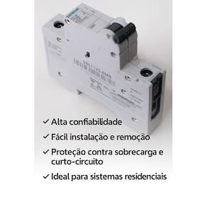 Disjuntor Unipolar 1P Curva B 20A Siemens Apresentamos o Disjuntor Unipolar 1P Curva B 20A Siemens, a escolha ideal para garantir a segurança e eficiência do seu sistema elétrico. Este disjuntor é projetado para proteger circuitos elétricos contra sobrecargas e curtos-circuitos, proporcionando tranquilidade e confiabilidade em suas instalações. Benefícios e Características Principais: Proteção eficaz contra sobrecargas e curtos-circuitos, garantindo a segurança do seu ambiente. Curva B, ideal para circuitos com cargas resistivas e pequenas flutuações de corrente. Fabricado pela Siemens, uma marca reconhecida pela qualidade e durabilidade de seus produtos. Fácil instalação e manutenção, economizando tempo e esforço. Especificações Técnicas: Corrente Nominal: 20A Tensão Nominal: 240/415V AC Capacidade de Interrupção: 6kA Tipo de Montagem: Trilho DIN Dimensões: 18mm de largura Material: Plástico de alta resistência Itens Inclusos: 1 Disjuntor Unipolar 1P Curva B 20A Siemens Manual de instalação : 3 meses