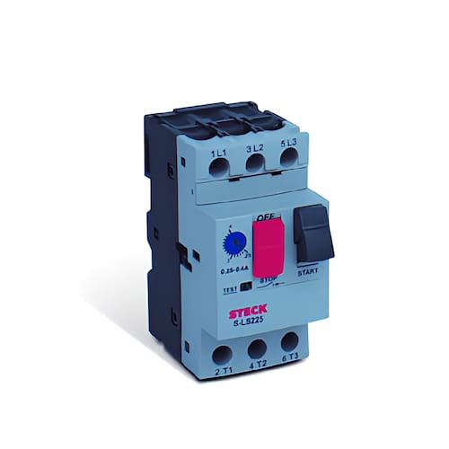 Disjuntor Steck Disjuntor Motor Trifásico 9-14a Sls2251f Steck DISJ MOTOR CHALLENGER 3P 25A 9-14A. São disjuntores termomagnéticos adaptados a proteção e comando de motores normalmente utilizado em conjunto com um contator conduzindo corrente em condição normal e interrompendo correntes em condições anormais (curto circuito e sobrecarga) se constituindo em um dispositivo de partida de motor. O disjuntor-motor permite o arranque de motores a tensão plena, proteção contra sobrecargas e curto- circuitos, não necessitando de fusíveis ou interruptores adicionais. Proteção contra a falta de fase e sobre cargas são asseguradas por relé térmico acoplado. A frequência de manobras e função do contator e as ligações mecânicas/elétricas contator+disjuntor garantem um conjunto compacto facilitando a interligação elétrica e montagem em caixas. O acionamento manual do disjuntor motor e feito através dos seus botões frontais e a corrente térmica e regulada no botão de ajuste. As peças energizadas são inacessíveis ao toque garantindo a proteção física do operador (IP2XX). Informações Técnicas:Cat. Ac3 Uimp: 6Kv Ue: 220V/380V/440V/690V Icu: 100/15/8/3 KA Ics: 100/7,5/4/2,25 KA gL/gG: -/80/63/50 A Pe: 3/5,5/7,5/9 KWPeso: 0,290 Kg