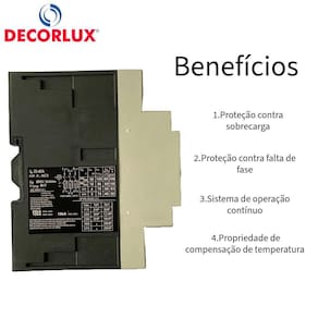 Disjuntor Motor Tripolar 80A Ajuste 25.0-40.0A Decorlux Disjuntor Motor é um dispositivo para proteção de motores contra curto-circuito. Sobrecarga e falta de fase associado ao relé térmico acoplado. Interrompe correntes em condições anormais. Utilizados para a proteção e o comando de motores, em conjunto com um Contator em condições normais e proteção por interrupção de correntes em condições anormais curto-circuito e sobrecarga . Permitem o arranque de motores com tensão plena, proteção contra sobrecargas e curtos-circuitos, em regime AC3. O relé térmico acoplado protege contra a falta de fase e sobrecargas. O acionamento manual do disjuntor motor é feito pelos botões frontais, e a corrente térmica é regulada no botão de ajuste. Especificações Técnicas: Marca: Decorlux Modelo: DM8040 Tensão: Até 690Vac Corrente: 80A Corrente de Ajuste: 25.0-40.0A Tensão nominal de isolação Ui : 690V Freqência nominal: 50/60Hz Grade de poluição: Grade III Acionamento: 2-botões Temperatura ambiente: -540ºC, , média de temperatura em 24h não excedendo +35C. Altitude de instalação: