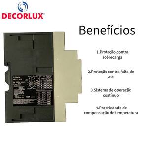 Disjuntor Motor Tripolar 80A Ajuste 25.0-40.0A Decorlux Disjuntor Motor é um dispositivo para proteção de motores contra curto-circuito. Sobrecarga e falta de fase associado ao relé térmico acoplado. Interrompe correntes em condições anormais. Utilizados para a proteção e o comando de motores, em conjunto com um Contator em condições normais e proteção por interrupção de correntes em condições anormais curto-circuito e sobrecarga . Permitem o arranque de motores com tensão plena, proteção contra sobrecargas e curtos-circuitos, em regime AC3. O relé térmico acoplado protege contra a falta de fase e sobrecargas. O acionamento manual do disjuntor motor é feito pelos botões frontais, e a corrente térmica é regulada no botão de ajuste. Especificações Técnicas: Marca: Decorlux Modelo: DM8040 Tensão: Até 690Vac Corrente: 80A Corrente de Ajuste: 25.0-40.0A Tensão nominal de isolação Ui : 690V Freqência nominal: 50/60Hz Grade de poluição: Grade III Acionamento: 2-botões Temperatura ambiente: -540ºC, , média de temperatura em 24h não excedendo +35C. Altitude de instalação: