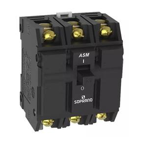 - Marca: Soprano; - Referência: 05001.5100.31; - Modelo: ASM3-B 100A; - Fabricado em termofixo resistente a altas temperaturas; - Corrente nominal - In(A) de 100; - Tensão máxima de isolamento de 380(Vca); - Número de pólos: 3; - Vida útil mecânica de 4.000 manobras; - Vida útil elétrica de 6.000 manobras; - Frequência de 50/60 Hz; - Temperatura ambiente de 50C; - Homologação PEC 11 Cemig (consultar manual); - De acordo com NBR IEC 60947-2.