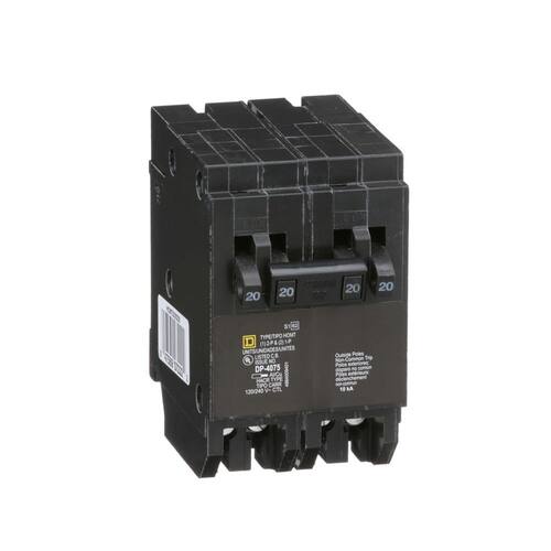 - Disjuntor em tandem homeline com polo único duplo de 20 amperes e um polo duplo a 20 amperes