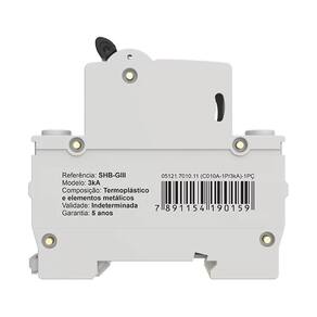 Características Principais: Marca: Soprano Modelo: SHB-GIII Tensão Nominal: 127/220V Número de Polos: 1 Curva de Disparo: C Padrão de Instalação: DIN Grau de Proteção: IP20 Cor: Branco EAN: 7891154190159