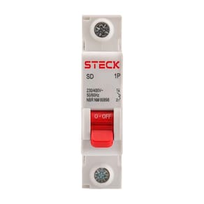 Características Adicionais: Minidisjuntor Termomagnético para Instalação em Trilho DIN 35 mm Curva de Disparo C (5 a 10 Vezes a Corrente Nominal) Capacidade de Interrupção de 3 kA Manopla Vermelha com Indicação ON/OFF Alimentação Elétrica por Ambos os Lados (Topo ou Base)