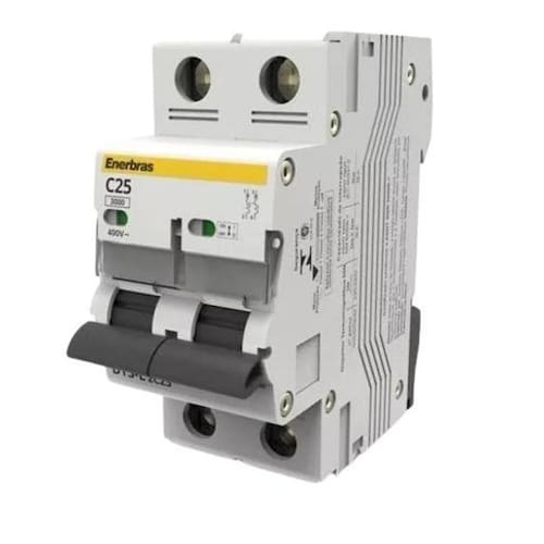 Disjuntor Termomagnético Bipolar Enerbras - 10A Disjuntor termomagnético mais segurança para o seu maior patrimônio. Os disjuntores termomagnéticos da enerbras foram desenvolvidos para a proteção de instalações elétricas contra sobrecarga e curto-circuito. São equipados com sistemas de desarme através de disparadores térmicos para a proteção contra sobrecarga e magnéticos para a proteção contra curto-circuito, atuando com extrema agilidade e precisão. Possuem mecanismo de “disparo livre” garantindo o desarme do mecanismo mesmo que a alavanca de acionamento esteja travada na posição "ligado". Contatos especiais com camada de prata garantem a segurança contra soldagem em caso de curto-circuito. Possuem câmara de extinção de arco para absorver Energia do arco elétrico formado durante o curto-circuito, extinguindo-o imediatamente. Marca: Não Informado