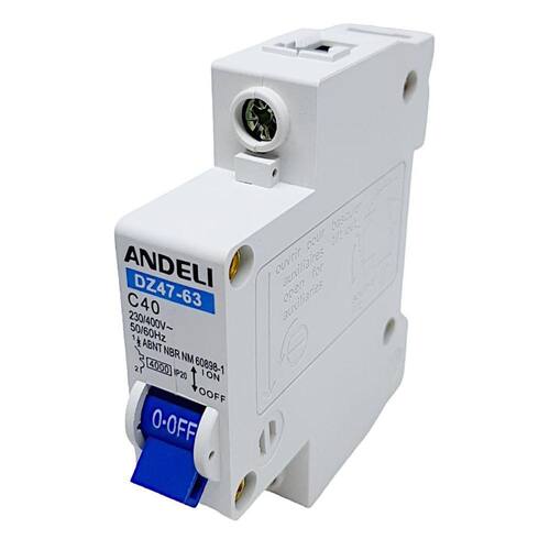 Disjuntor unipolar 40a - andeli dz47-63 Descrição geral: O disjuntor unipolar 40a é projetado para suportar correntes elétricas de até 40 amperes, tornando-o ideal para aplicações que demandam proteção eficaz em circuitos de baixa corrente.