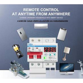 Disjuntor Wifi 63A medidor Consumo Inteligente Alexa Google Disjuntor wifi, monofásivo, compatível com Alexa e Google home Controlável via app de qualquer lugar do mundo App - eWeLink 220V para cargas de até 63 Amperes Marca consumo e gera relatório de consumo via app Mostra consumo atual e consumo total Função: 1. Sob a proteção da tensão 210v-145v ajustável padrão: 170v 2. Sobre a tensão proteciton 230v-300v ajustável padrão: 270 3. Sobre a proteção atual 1a-63a ajustável padrão: 40a 4. Tempo de reconexão atraso no tempo : 3s-300s padrão: 30s 5. Medidor de tensão 6. Amperímetro 7. Curto atual e sobre a proteção atual 8. Controle remoto wifi 9. Timer Rtensão: 220v; frequência: 50hz/60hz