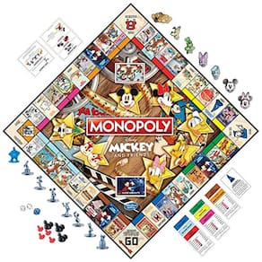 Celebre as amadas memórias dos desenhos animados com o jogo Monopoly: Disney Mickey and Friends Edition! Ótimo para colecionadores da Disney, o jogo inclui 7 pinos exclusivos e um livro de regras de colecionador lindamente projetado. Os jogadores percorrem o tabuleiro do Monopoly com um dos tokens de personagens da Disney: Mickey Mouse, Minnie Mouse, Pato Donald, Daisy Duck, Pateta, Plutão e Chip & Dale. Mas cuidado com o token Pete que pisa no tabuleiro e pode fazer os jogadores pagarem! Ele também apresenta elementos de jogos temáticos de Mickey e Friends, incluindo conjuntos de cores curtas animados, veículos Mickey e Friends como ferrovias e acessórios icônicos do Mickey como utilitários. Os cartões Amizade e Momentos Mágicos apresentam momentos de desenhos animados e curiosidades favoritos dos fãs. Para acumular mais aluguel, coloque marcadores Little Mickey e Big Mickey em espaços de propriedade com temas de desenhos animados, como How to Fish e Get a Horse. Este jogo Monopoly é um grande presente para colecionadores da Disney e fãs do Mickey Mouse, com mais de 8 anos. Direitos autorais Disney. Os nomes e logotipos Hasbro, Hasbro Gaming, Parker Brothers e Monopoly, o design distinto do tabuleiro de jogo, os quatro quadrados de canto, o nome e o personagem Mr. Monopoly, bem como cada um dos elementos distintivos do tabuleiro e das peças de jogo são marcas registradas da Hasbro por seu jogo de comércio de propriedades e equipamentos de jogo.
