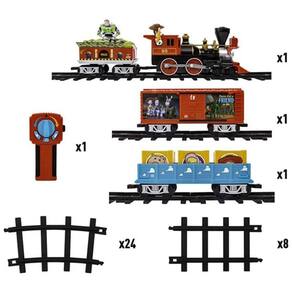 CONJUNTO DE TREM PARA O INFINITO E ALÉM Chamando todos os fãs de Toy Story Junte se a Buzz, Woody e sua turma no trem Toy Story Ready to Play da Pixar Isso é um ótimo presente para crianças e amadores de trem O CONJUNTO INCLUI Locomotiva estilo geral a bateria Buzz Lightyear Pizza Planet concurso com carga alienígena gráficos de cena de filme de vagão altamente detalhados 24 trilhos de plástico curvos e 8 retos Controle remoto CARACTERÍSTICAS DO CONJUNTO DE TREM Locomotiva a bateria com sons de trem autênticos, incluindo apito de sino Anúncios oficiais do filme do xerife Woody Farol de trabalho, acopladores fixos Abertura de portas e vagão Controle remoto amigável Marca: Não Informado