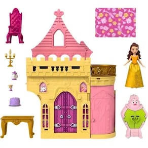 Disney princesas castelo da bela HLW94 T108636 Os fãs ficarão encantados com este playset de castelo inspirado na Bela e a Fera da Disney Uma charmosa casa de bonecas em pequena escala, o castelo se abre para revelar várias áreas de lazer, além de uma boneca Bela, 4 amigas, móveis e muito mais. O playset inclui uma alça para jogar em movimento e pode se conectar com outros Storytime Stackers para expandir o reino. As bonecas não podem ficar sozinhas. Cores e decorações podem variar.Homologação Inmetro: CE-BRI/IQB 005923 53890/20-055