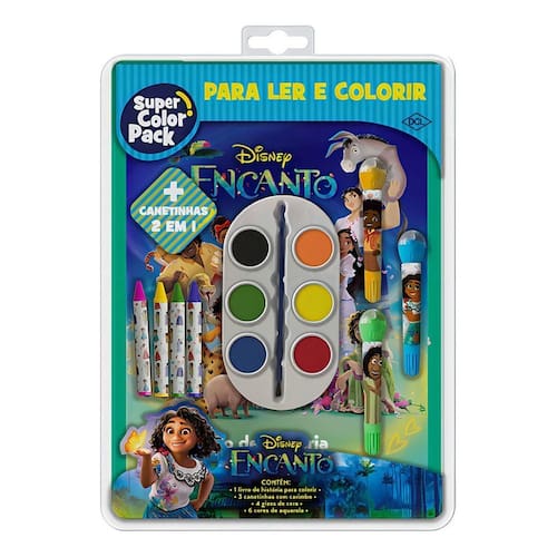 Embarque em uma jornada colorida e educativa com o Super Color Pack Encanto! Esse kit oferece às crianças a oportunidade de mergulhar no mundo encantador enquanto exploram sua criatividade e habilidades de leitura. Nesse kit especial, as crianças encontrarão um livro, repleto de ilustrações para ler e colorir, convidando-as a se perder nas aventuras dos personagens mais amados. Além disso, traz gizes de cera, uma paleta de aquarela e canetinhas coloridas com carimbos acoplados, permitindo que as crianças adicionem um toque pessoal às suas criações. Ao colorir e ler, os pequenos não apenas desenvolvem suas habilidades motoras e criativas, mas também aprimoram suas habilidades de leitura e compreensão, proporcionando uma aprendizagem envolvente e divertida. O Super Color Pack é mais do que apenas um kit de atividades, ele é uma porta de entrada para um mundo mágico onde a educação se entrelaça com a diversão, proporcionando às crianças momentos inesquecíveis de criatividade, descoberta e, é claro, muita cor!