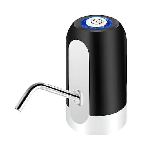 Dispensador elétrico bivolt para galões de 5, 10 e 20 litros, com bateria recarregável via USB, vazão de 1,5L/min e mangueira de silicone.Para uso em