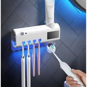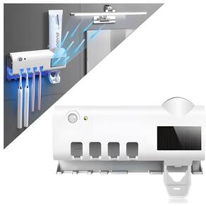 Dispenser Automático Painel Solar Desisnfecção 4 Escovas Suporte Para Escova De Dentes Esterilizador Com Luz UV