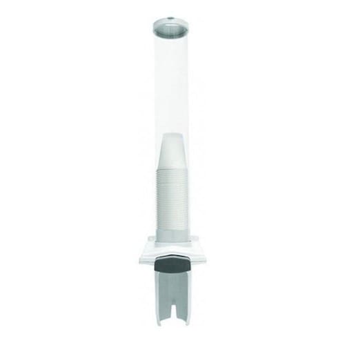 Possui um sistema que dispensa um copo por vez, colocando os copos dentro do tubo transparente na posição boca para baixo, para liberar o copo, aperte suavemente a tecla e aguarde o copo cair.