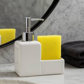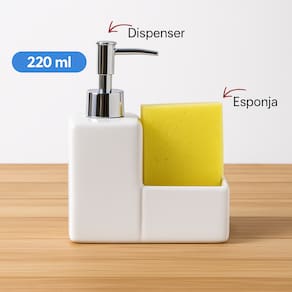Além de ser um acessório decorativo, o kit é extremamente funcional. O dispenser permite fácil dosagem de sabonete líquido, detergente ou álcool em gel, garantindo mais higiene e organização. Acompanhado de uma esponja, este conjunto se torna indispensável na rotina da sua cozinha ou banheiro.