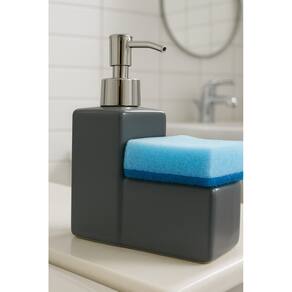 Dispenser de Cerâmica com Esponja 220ml Cinza -