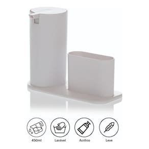 Além disso o dispenser conta com um porta esponja acoplado que deixará ainda mais fácil organizar o seu ambiente, proporcionando praticidade e eficiência.