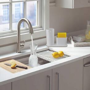 Além disso o dispenser conta com um porta esponja acoplado que deixará ainda mais fácil organizar o seu ambiente, proporcionando praticidade e eficiência.