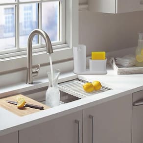 Além disso o dispenser conta com um porta esponja acoplado que deixará ainda mais fácil organizar o seu ambiente, proporcionando praticidade e eficiência.
