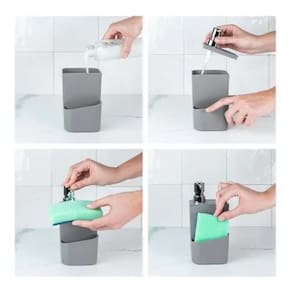 Dispenser de detergente líquido com porta bucha esponja pia dt500 cor: cinza dt500