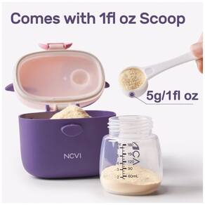O Dispenser de Fórmula NCVI é um recipiente portátil para armazenamento de leite em pó infantil, lanches, doces ou frutas, com múltiplos compartimentos internos e colher dosadora separada, ideal para viagens, piqueniques ou uso externo com bebês. Possui chifres macios em TPE na tampa para estabilidade durante o preenchimento, com capacidade para 230 g de fórmula.