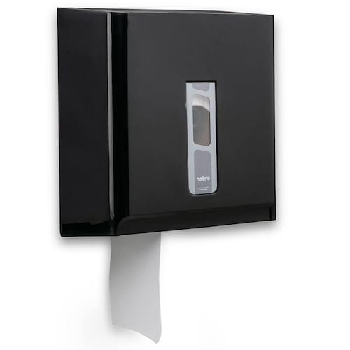Dispenser Papel Higiênico Street NobreO Dispenser para Papel Higiênico Nobre Street é indicado para banheiros e lavabos. Com intervalo de troca maior do que com rolos convencionais, você ganha mais agilidade e economia. Elegante, possui design inovador e único.Além de proteger o papel higiênico da umidade e deixar seu banheiro muito mais bonito. Para ambientes que possuem alta circulação de pessoas. Com capacidade para rolos de 300m a 500m.Cor: Preto.Contém: Dispenser, 4 parafusos, 4 buchas.Peso líquido produto: 770gPeso bruto produto: 865gMedida produto cxaxl : 29cm x 31,3cm x 13,3cmContém: 1 dispenser, 4 parafusos, 4 buchas.Composição: polipropileno pp , poliestireno ps