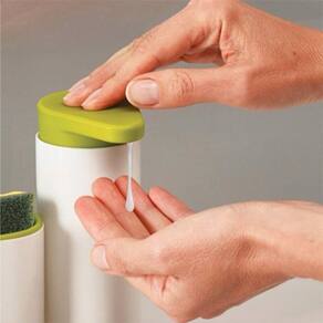 Seu diferencial é a saída do detergente voltada para baixo, assim quando pressionar não respinga.