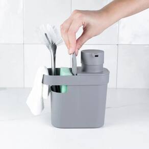 O Dispenser Para Detergente E Organizador De Pia Trium 650 ml é perfeito para quem procura funcionalidade e beleza sobre a pia, pois permite a organização de forma versátil além de otimizar o espaço do ambiente. Seus detalhes começam no design diferenciado da tampa, que garante um toque mais confortável e base com furos que facilitam o escoamento da água. Além de contar com um recipiente para o detergente, com capacidade para 650ml, o produto permite a organização de vários itens da pia, incluindo esponja, escova, rodo e pano. Fabricado em material resistente e flexível Polipropileno , além do plástico ser texturizado impedindo riscos e facilitando a higiene. A Linha Trium possui design minimalista, que combina com todos os tipos de cozinhas ou varandas gourmet, deixando o lar ainda mais delicado e atual. Design, beleza e praticidade são as características da linha que a tornam ideal para qualquer casa, mantendo a experiência Ou ainda mais completa. Cuidados Vai a lava-louças, sugere-se higienizar com sabão neutro e esponja macia, evitando produtos abrasivos no processo de limpeza. Marca: Não Informado