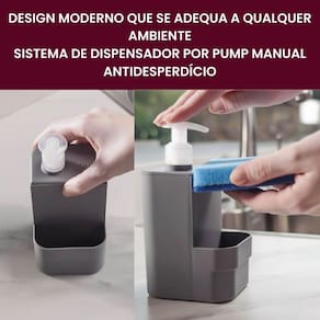 Com capacidade para 500ml de detergente líquido, o dispenser acompanha um suporte acoplado para a esponja, oferecendo tudo o que você precisa ao alcance das mãos. Ideal para otimizar o espaço da bancada, mantendo tudo no lugar certo com muito mais higiene e estilo.