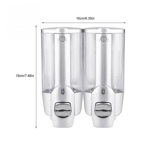 Dispenser Duplo com reservatório para Shampoo, Sabonete ou Álcool Gel possui manuseio pratico e fácil de ser instalado, garante eficiência e evita desperdício na saída do sabonete.