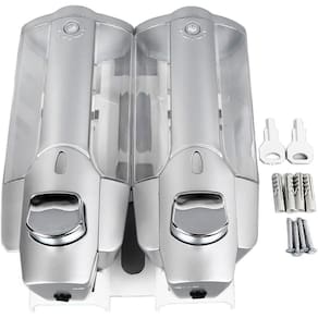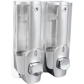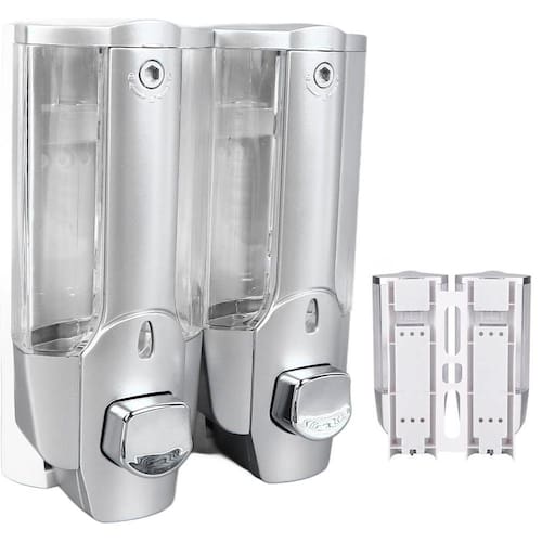 Dispenser Duplo com reservatório para Shampoo, Sabonete ou Álcool Gel possui manuseio pratico e fácil de ser instalado, garante eficiência e evita desperdício na saída do sabonete.
